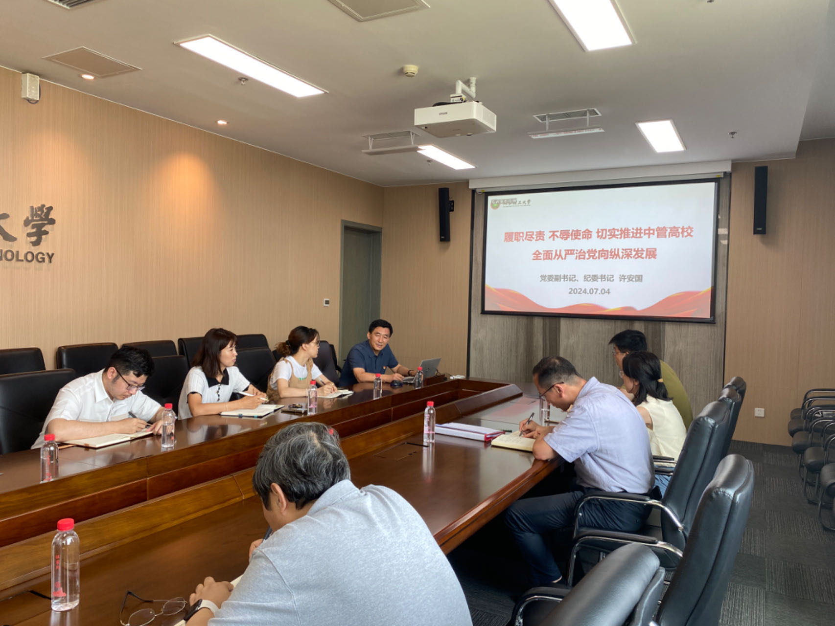 为深入学习贯彻习近平总书记关于全面加强党的纪律建设的重要论述,推动党纪学习教育走深走实,7月4日下午,校党委副书记、纪委书记许安国以《履职尽责 不辱使命 切实推进中管高校全面从严治党向纵深发展》为题,面向纪巡审党支部讲授党纪学习教育专题党课。学校纪检监察机构、党委巡视办公室、审计处全体党员参加学习。校纪委副书记、纪巡审党支部书记赵文祥主持。